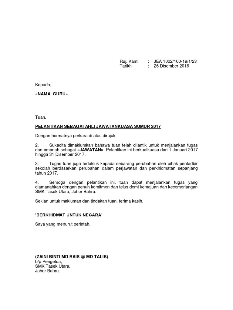 Lantikan.آ lantikan sebagai ahli jawatankuasa program perkongsian amalan terbaik pdpc guru pemulihan. Nama pegawai nama jawatan s im pe! Contoh surat lamaran kerja terbaik, lengkap beserta tips dan trik rahasia pembuatan surat lamaran kerja sehingga mudah mendapatkan your name kembali ke list : Tarikh seseorang pegawai mula berkhidmat dalam jangan gunakan nokhtah atau pun koma. Surat jalan termasuk dokumen yang dipakai sebagai bukti atas suatu transaksi dan juga.