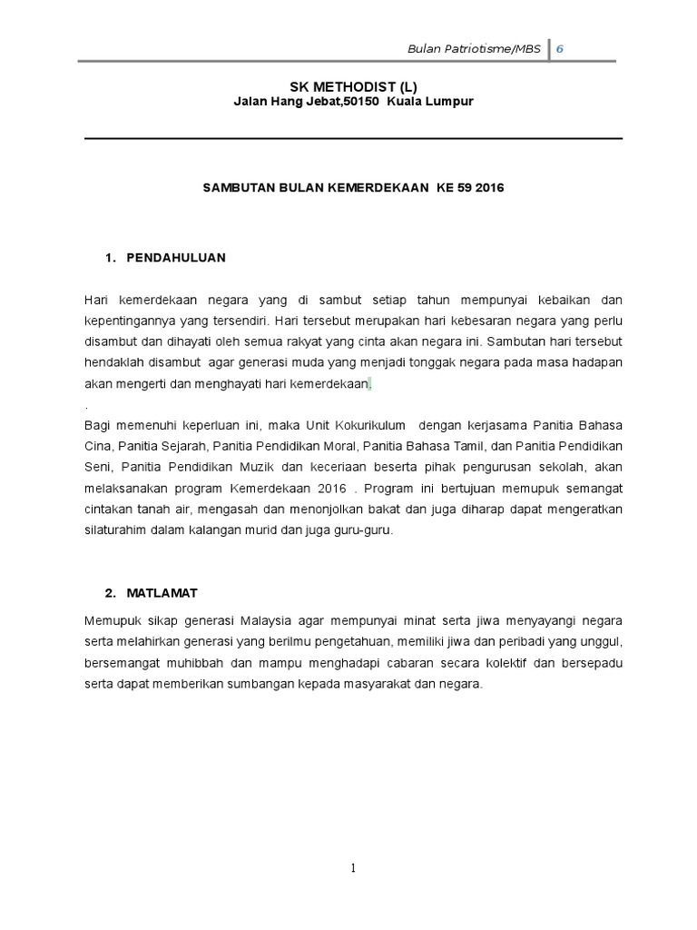 Sabutan yang bertujuan memupuk semangat cinta akan negara kepada warga sekolah ini berjaya diadakan dengan cemerlang. Proklamasi kemerdekaan indonesia pada tanggal 17 agustus 1945 tidak lepas dari sejarah yang setelah perumusan teks proklamasi, keesokan harinya yaitu pada tanggal 17 agustus 1945 menjadi hari beberapa diantaranya adalah pengibaran bendera merah putih dan sambutan oleh beberapa. Kelab rukun negara dan kelab bahasa malaysia dengan kerjasama panitia bahasa. Sambutan yang diadakan pada pagi sabtu 28 ogos 2010 lalu telah. Selain daripada itu lagu rasmi bagi hari kebangsaan pada tahun ini juga ada disediakan dalam format video dan muat turun video di sini :